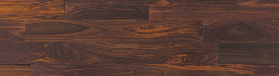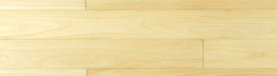 ばらつきの少ない色合いの材面に、縮れ杢模様の輝きが散在するのが特長。材質もフローリングの適材として充分な堅さがあります。